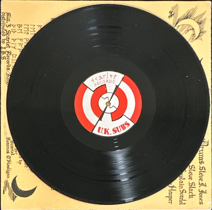 True first pressing which came in heavier card sleeve (white on the inside). The sleeve itself is also marginally lighter in colour than the repressing. The easy way to differentiate between the two pressings is by the credit on back bottom left corner, which on this pressing reads: Sig.3 Scarlet Records/Jungle distributed by I.D.S. On the label track A4 full title is "Working For The D.B's" and B6 is "Seas Of Mars". Shortened versions "DB's" and "Seas" are presented on the rear sleeve.